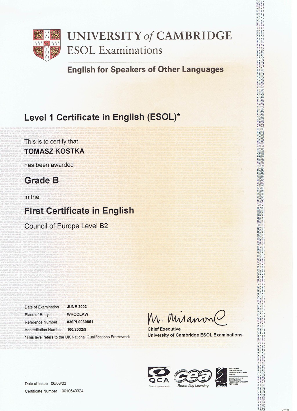 - Certyfikat asesora Ośrodka Doradczo-Szkoleniowego Transmisja – 2003