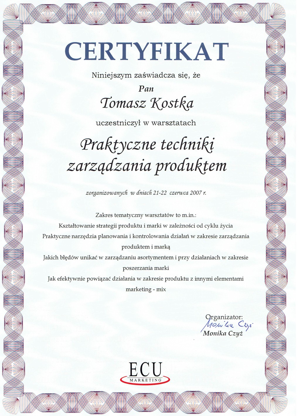 - Certyfikat coacha biznesu Szkoły Coachingu Moderator – 2007-2008
